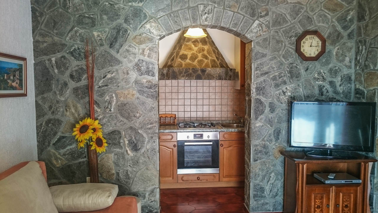 Appartement B (43 m²)    : Klimaanlage, Internet WiFi, LED-kabel-TV, Mikrowellenherd, Küchlschrank-Gefrierraum, Induktionskochfeld, Backofen, Kaffemaschine, Toaster, Elektro-Grill, Spülmaschine, (Waschmaschine und Trockner in der Waschküche) Bügeleisen, Bügelbrett, Trocknenhaube, Stilmöbel, Wohnzimmer - Zofabett, Schlafzimmer – Doppelbett 180 x 200, kleine Küche, Badezimmer mit Badewanne, eine überdachte Terrasse.