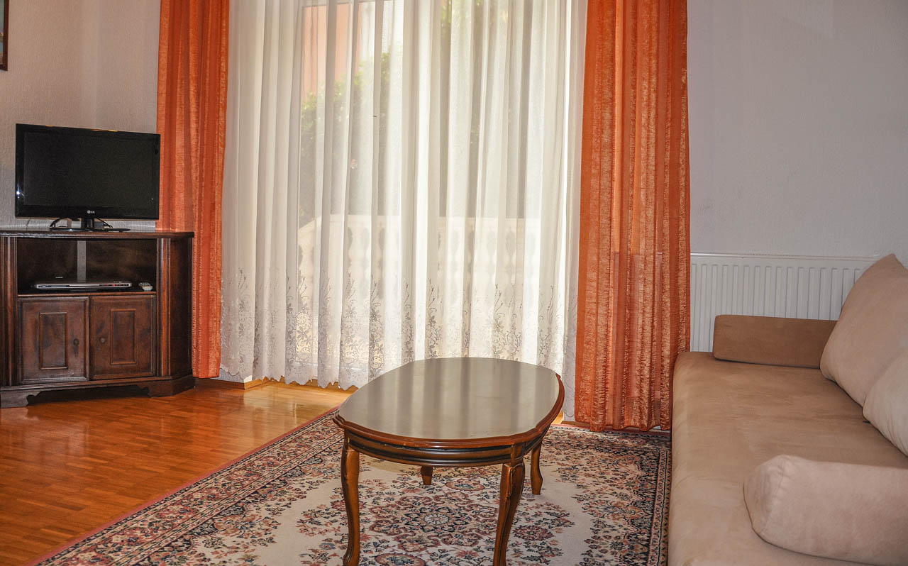 Appartement A (46 m²)    : Klimaanlage, Internet WiFi, LED-kabel-TV, Mikrowellenherd, Küchlschrank-Gefrierraum, Kaffemaschine, Induktionskochfeld, Backofen, Toaster, Elektro-Grill, Spülmaschine, (Waschmaschine und Trockner in der Waschküche) Bügeleisen, Bügelbrett, Trocknenhaube, Stilmöbel, Wohnzimmer - Zofabett, Schlafzimmer – Doppelbett 180 x 200, kleine Küche, Badezimmer mit Badewanne, ein überdacht Balkon.